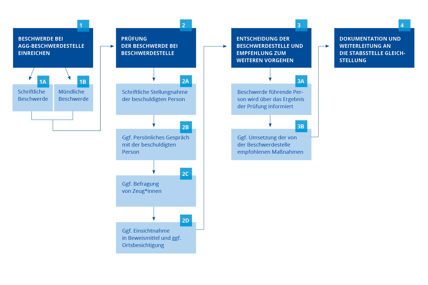- Prüfung der Beschwerde durch die Beschwerdestelle: Die Beschwerdestelle ermittelt, ob der Sachverhalt eine Diskriminierung nach dem Allgemeinen Gleichbehandlungsgesetz darstellt.