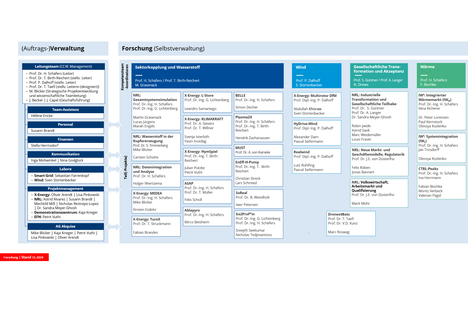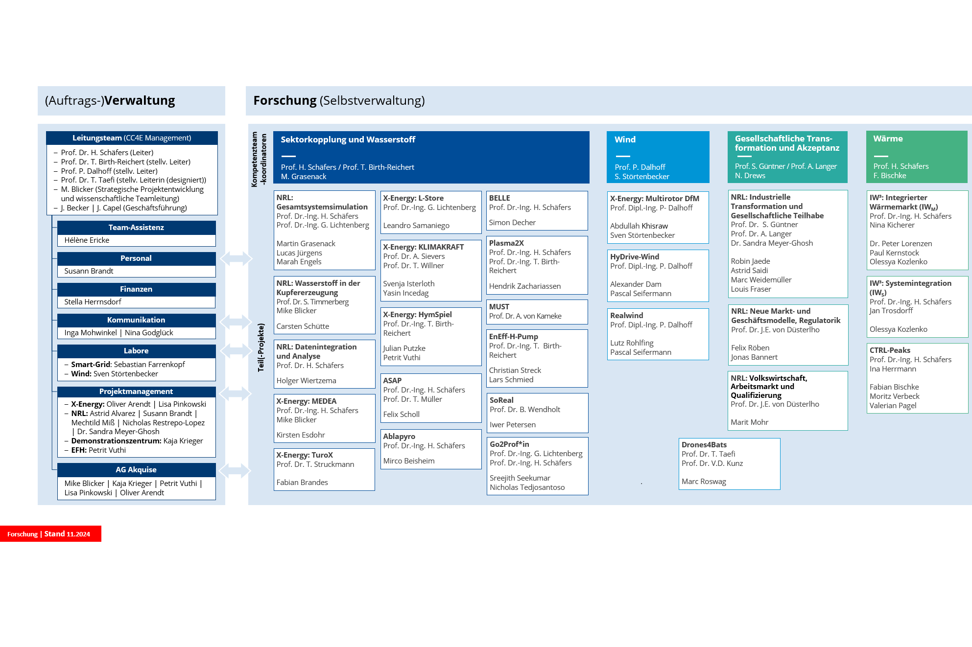 Die unten aufgeführten Organigramme verschaffen eine Übersicht über das Leitungsteam, die Mitarbeiter*innen im Projekt- und Office-Management sowie die wissenschaftlichen Mitarbeiter*innen in den Forschungsprojekten.