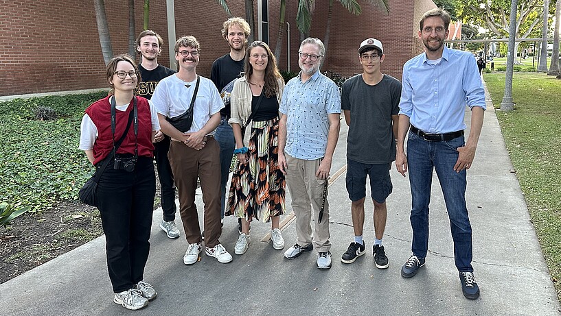 Aber es gab auch CSULB-Studierende, die KI nicht so skeptisch gegenüberstanden und mit je zwanzig von ihnen wurde dann in Workshops enger zusammengearbeitet. Die Studierenden konnten verschiedene KI-Tools, wie runway, Copilot Dall-E 3 und Magic Studio ausprobieren, die die HAW Hamburg-Lehrenden mitgebracht hatten und ihre eigenen KI-generierten Clips erstellen. "Die Studierenden waren überrascht, wie einfach es war zu einem Video aus einem generierten Bild zu kommen. Aber gleichzeitig verwundert, wie schwierig es ist, genau das gewünschte Ergebnis zu erreichen", so der Eindruck von Marco Grimm nach der gemeinsamen Arbeit. Und das bestätigt seine aktuelle Meinung zu KI: "Ich glaube, dass wir sehr weit davon entfernt sind, quasi einen roten Button zu generieren, auf dem man drückt, einen Prompt schreibt und dann kommt einen kompletten Film raus."