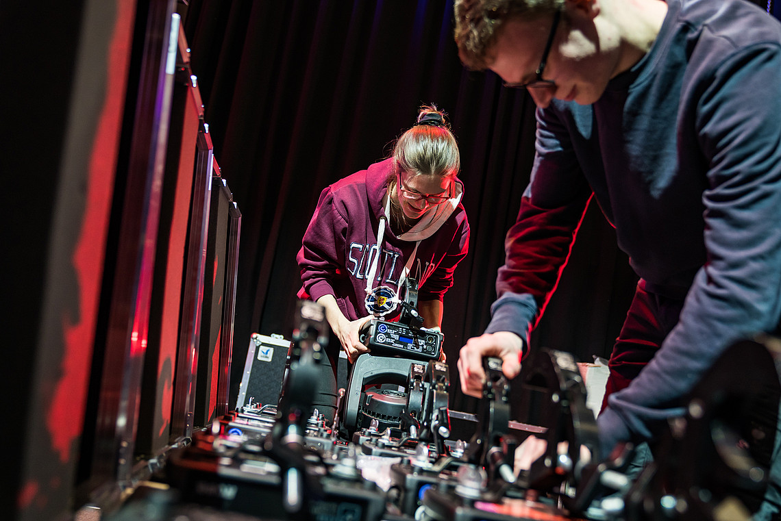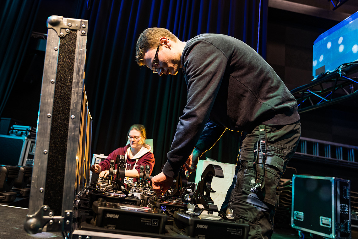 Das jährlich wechselnde Bühnensetup im Lichtlabor bietet eine große Möglichkeit, sich an verschiedenen Lichtstellpulten auszuprobieren, deren Methodik zu erlernen und die verbauten Scheinwerfertypen kennenzulernen.
