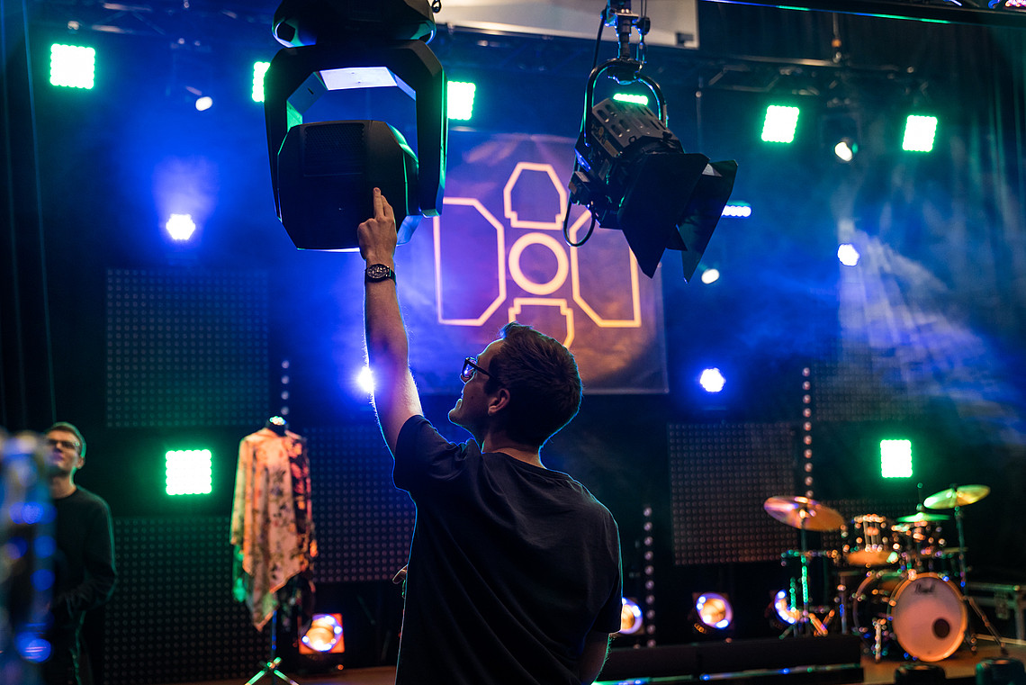 Vor allem in dem großen Showroom des Lichtlabors stehen verschiedenste Scheinwerfer und Lichtstellpulte sowie komplexe Netzwerktechnik zur Verfügung. Mit Medienservern lassen sich LED-Flächen und Projektionen steuern und in Shows integrieren.