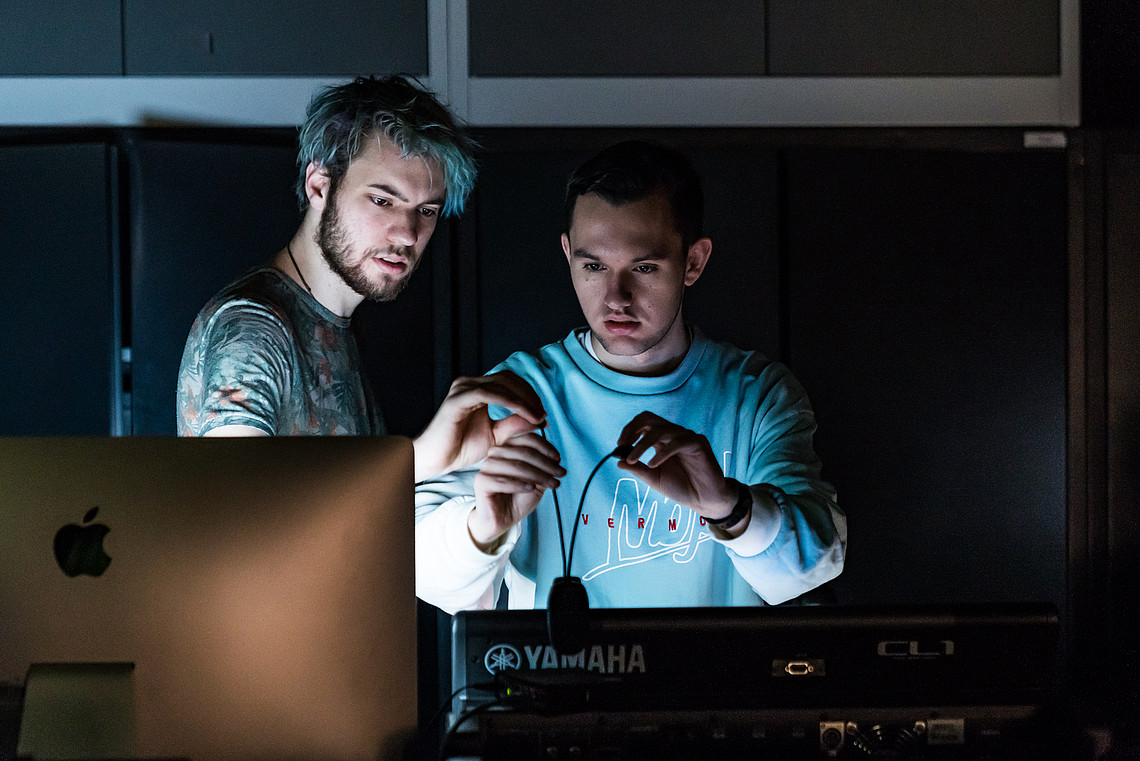 Die in den Unterrichtsmodulen „Bildgestaltung / Dramaturgie“ für Medientechnik und „Dramaturgie“ für Media Systems erarbeiteten Inhalte und Konzeptionen werden im Produktionslabor effektiv und kreativ mit technischer Präzision umgesetzt.