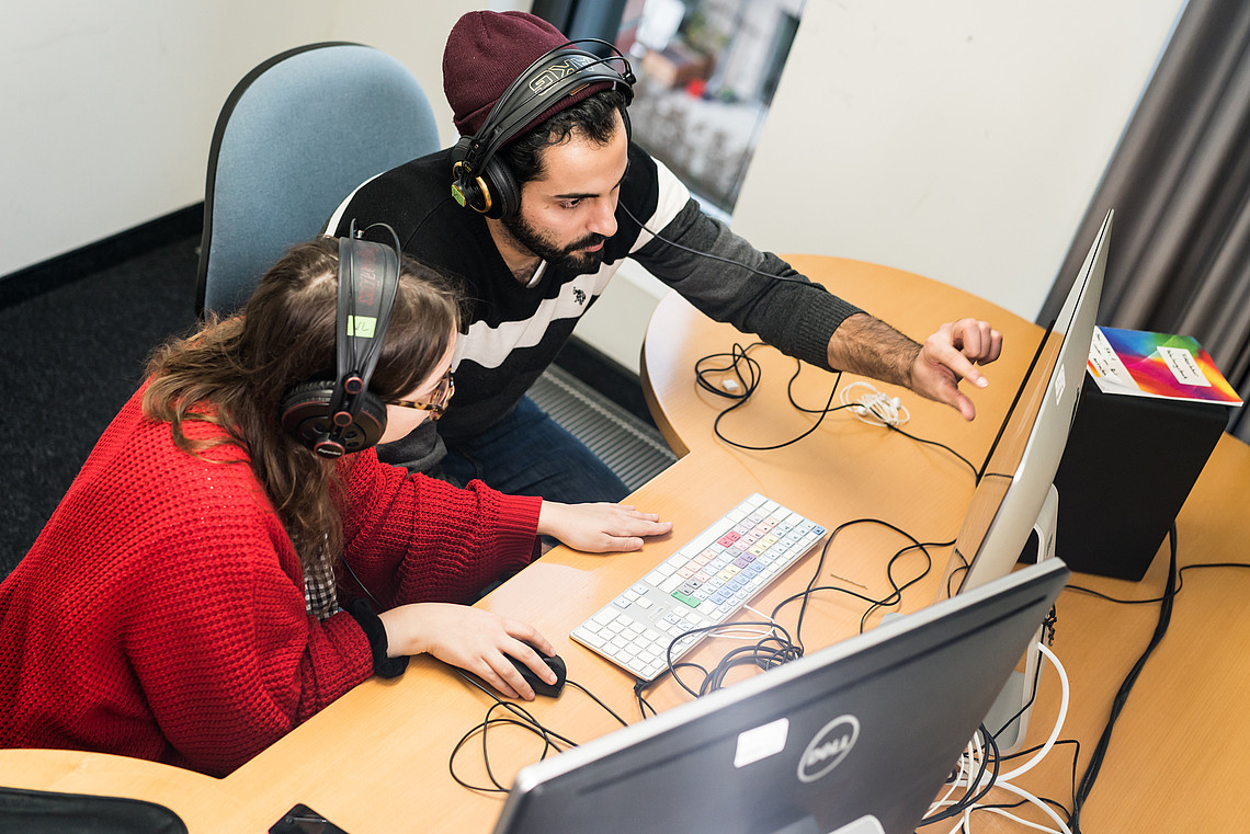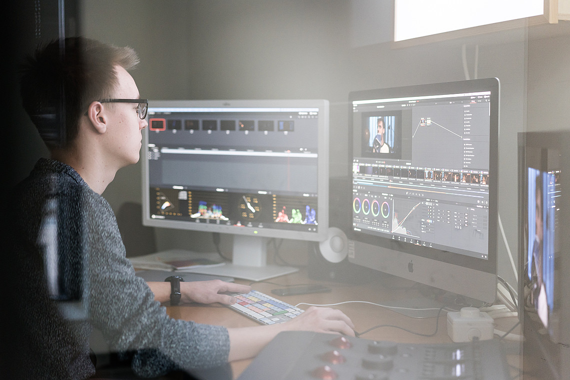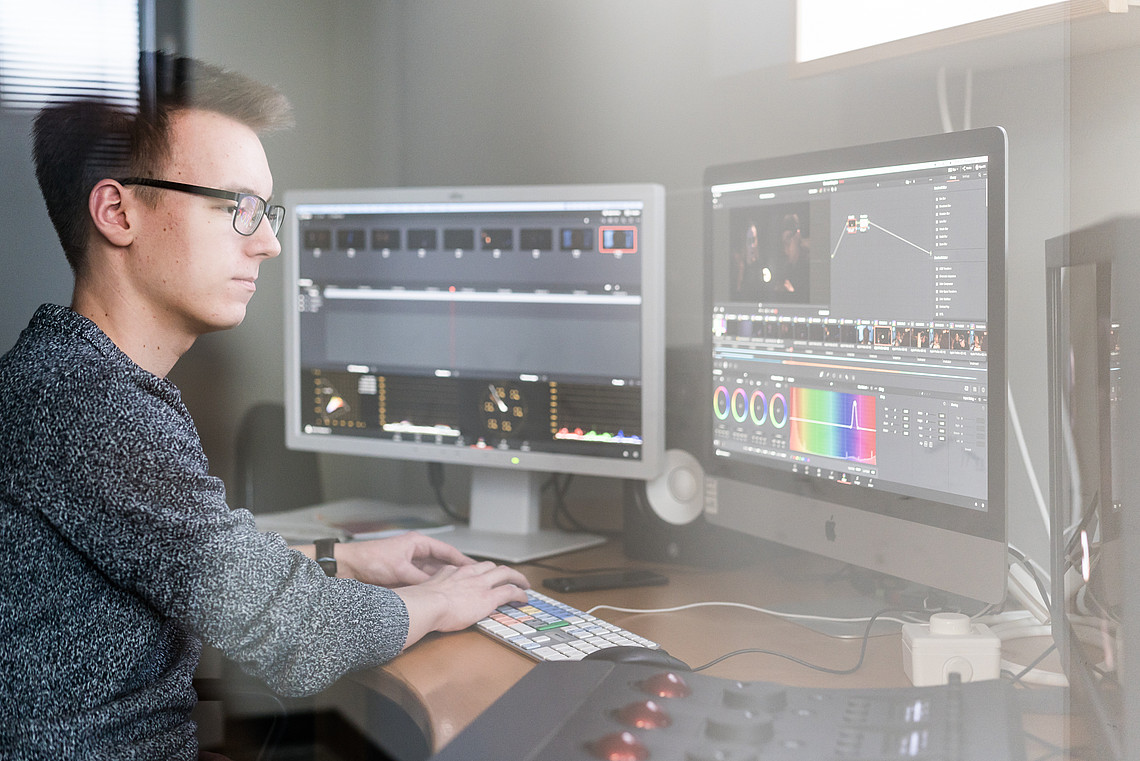 Das Videolabor der Fakultät EMI befindet sich in der vierten Etage des Nebengebäudes auf dem Kunst- und Mediencampus (Gebäude B, Finkenau 35).
