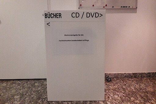 Die Fachbibliothek Soziale Arbeit & Pflege besitzt eine Medienrückgabebox für Bücher und CDs/DVDs.