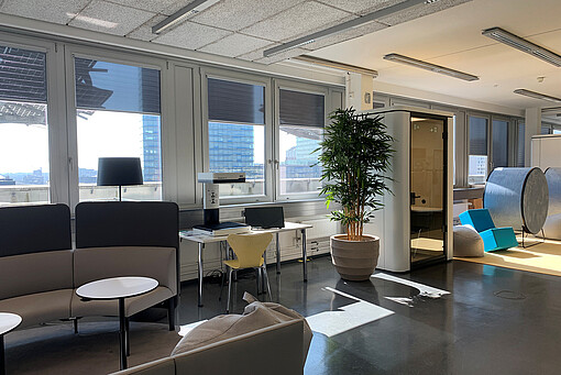 Das HIBS Learning Center bietet im 7. und 8. Stock des Gebäudes Berliner Tor 5 auf rund 1.000 m² eine moderne Lernumgebung, in der vielfältige Lernformen unterstützt werden und zukunftsorientiertes Lernen möglich wird. Vom kommunikativen Eingangsbereich über Mixed Zones bis hin zu ruhigen Arbeitsbereichen finden sich im HIBS Learning Center flexible Arbeitsplätze, die auf unterschiedliche Lernstile abgestimmt sind.