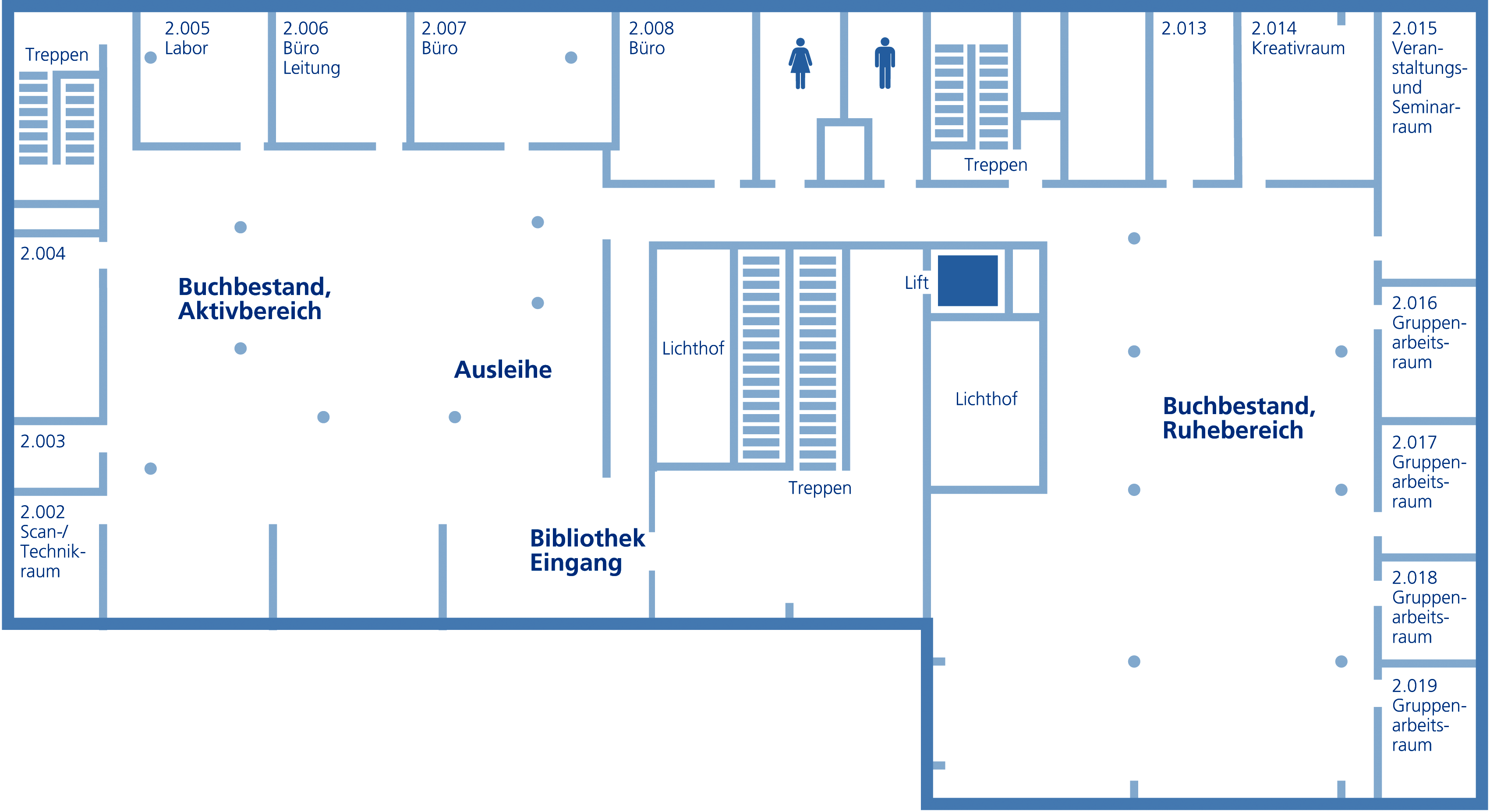 | Bibliothek | Gebäude B (Neubau) | 2. Stock |