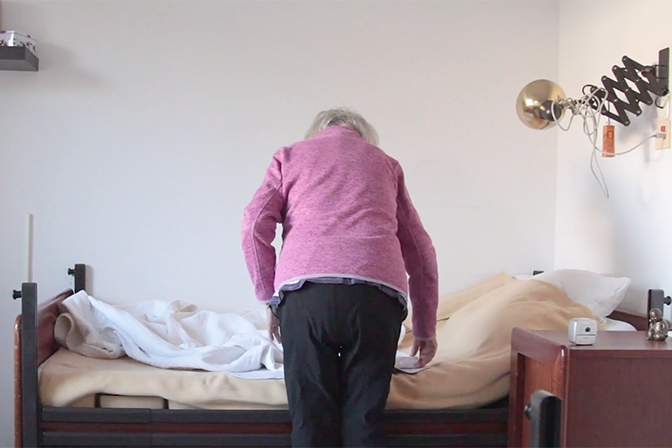 Ihr Kurzfilm zeichnet den von Demenz geprägten Alltag der Heimbewohnerin Freya ohne jegliche Wertung. Dafür verbrachten sie sehr viel Zeit in einem Altenheim und begleiten die Freya durch ihren Alltag. Warum sie gerade Freya für ihre Arbeit auswählten, können Marlene Hoberger und Nhat-My Dana Nguyen genau beschreiben: "Freya durchlebt bereits ein fortgeschrittenes Stadium der Demenz, ist aber trotzdem ansprechbar. Sie konnte uns daher mitteilen, ob sie an diesem oder jenen Tag gefilmt werden wollte." Beobachten konnte das Team den immer gleichen Tagesablauf von Freya und dass sich ihre Handlungen ständig wiederholten. Genau diesen Aspekt wollte die angehenden Kommunikationsdesignerinnen einfangen. Nach einer Zeit des Kennenlernen, beginnen die beiden zu filmem. Dafür stellen sie ihre Kamera auf ein Stativ in der Mitte ihres Wohnraum und ziehen sich zurück. "So haben wir einen Nachmittag gefilmt." Auch im Schnitt greift das Team anschließend wenig ein. Man ist während des gesamten Films sehr nah an Freya und ihrem alltäglichen Leben. Die Stille im Video unterstützt diese Intention. „Beim Betrachten halten wir ihren Alltag mit ihr aus, die Stille ist teilweise herausfordernd für die Zuschauer*innen.“