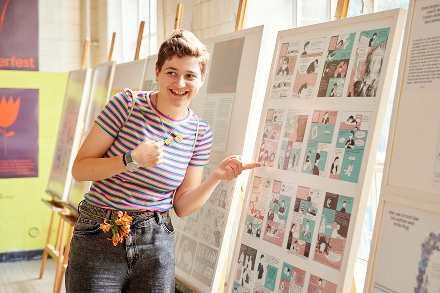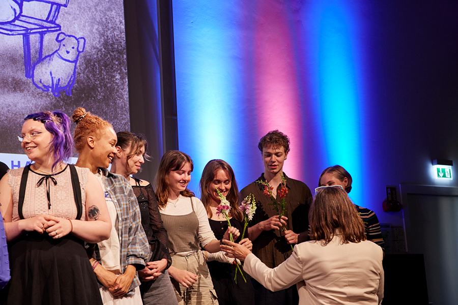 Die größte Leistung dieser großen und begeisternden Gruppe ist es, das Unfassbare der Bücherverbrennung bedrückend anfassbar zu machen. Dabei sind die Studierenden des Studiengangs Illustration als Zeichner:innen, Autor:innen, Animator:innen oder Puppenbauer:innen auf Spurensuche gegangen. In heutiger Sprache, in heutigem Ausdruck und mit den heutigen Mitteln der Visualisierung gelingt dem Team mit dem Magazin „feuerfest“ geradezu philosophische und bewegende Reflektionen – nicht nur auf das Geschehen vor 90 Jahren, sondern auch auf erschreckend aktuelle Versuche von Diktaturen, unbequeme Kultur und Wissen zu vernichten. Die Jury war beeindruckt.