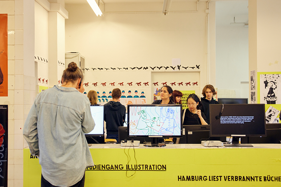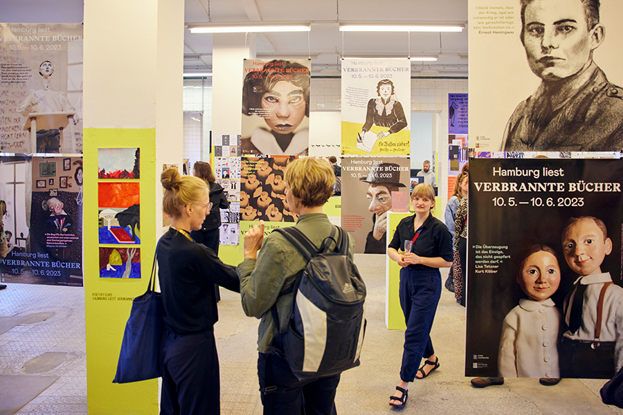 Insgesamt 57 Studierende aus dem Department Design beteiligten sich am Projekt „Hamburg liest verbrannte Bücher“ in Kooperation mit der Staatsbibliothe Hamburg. Es entstanden 16 Animationsfilme, 45 Plakate, ein über 200-seitiges Magazin mit 24 umfangreichen Beiträgen, 18 Puppen-Porträts von Autor:innen, 20 Zines (Kurz- und Kleinform von Maga-Zine) und über 3500 Zeichnungen, Malereien, Skizzen und Bildstrecken.