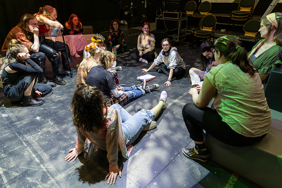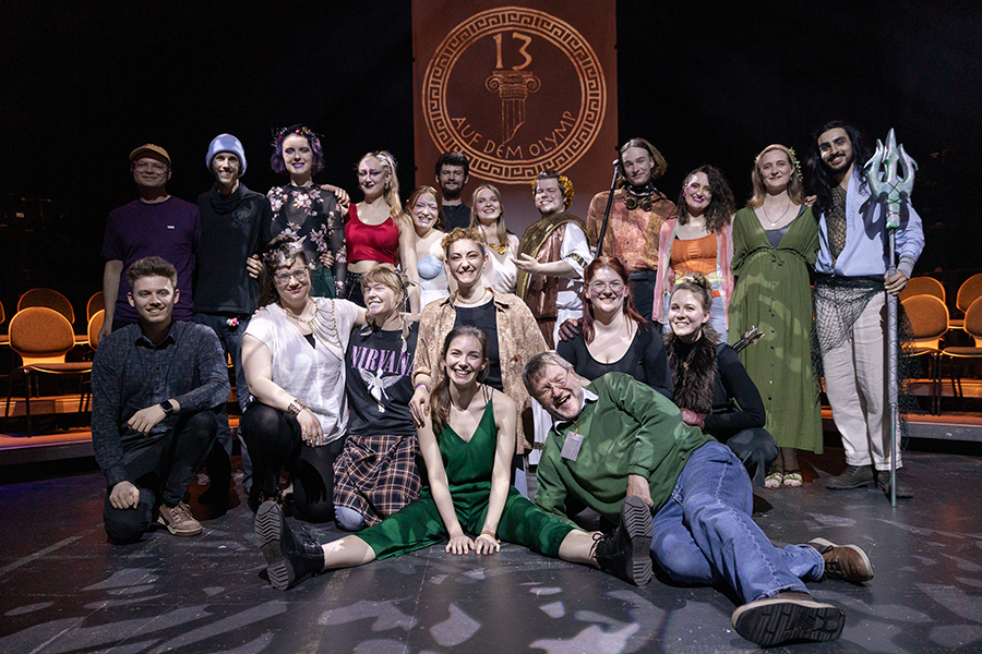 „Auf dem Olymp” beeindruckt durch seine Agilität und die “team-didaktische” Lernkurve im Projektverlauf. Der freie Gedankenaustausch zur Frage “Was ist Dramaturgie?” mündet in einem Theaterstück, das ein halbes Jahr vorher in keiner Weise abzusehen, geschweige denn geplant gewesen war. Das Kernteam aus acht Studierenden wächst auf 34 Mitwirkende an. Das Ziel eines Theaterstücks vor Augen, werden auf dem Weg “nebenbei” eine Teamstruktur entworfen und weiterentwickelt. Fähigkeitslücken werde erkannt und geschlossen, sowie neue Partner*innen eingebunden. Das Team muss sich selbst erfinden, da es eben keine Vorgaben wie in sonstigen Seminarprojekten gibt. Symbol dieses einnehmenden Teamspirits: Ein Sandwichmaker. Er stellt in durchgearbeiteten Tagen und Nächten zumindest eine Grundversorgung mit Kohlenhydraten sicher. Das Ergebnis dieser beeindruckenden Teamarbeit: Zwei tolle “Auf dem Olymp”-Aufführungen Anfang April im Produktionslaborder HAW Hamburg."