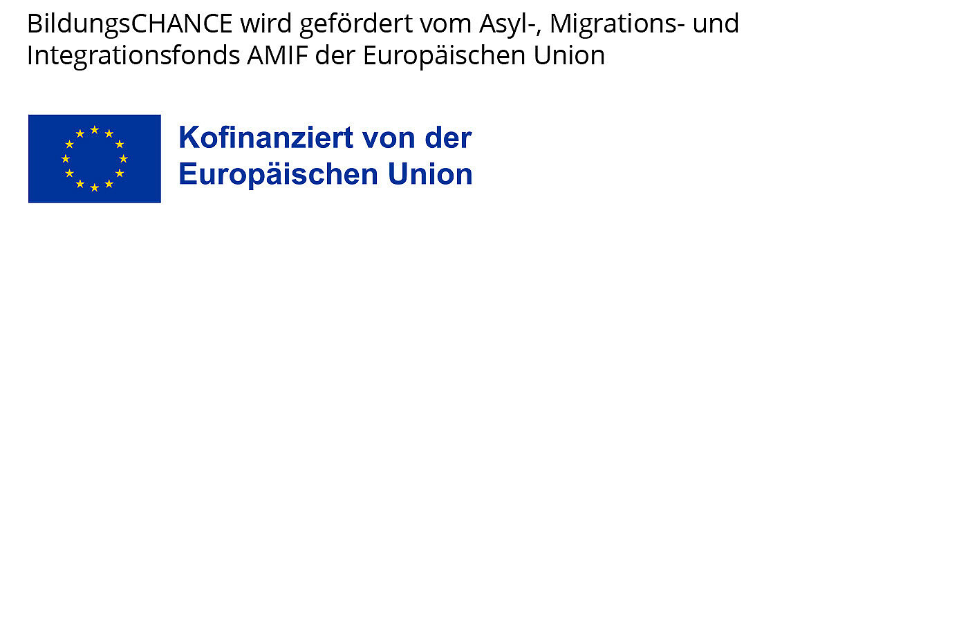 Die Maßnahmen des Projektes BildungsCHANCE der Arbeitsstelle Migration werden aus Mitteln des Asyl-, Migrations- und Integrationsfonds AMIF der Europäischen Union gefördert.
