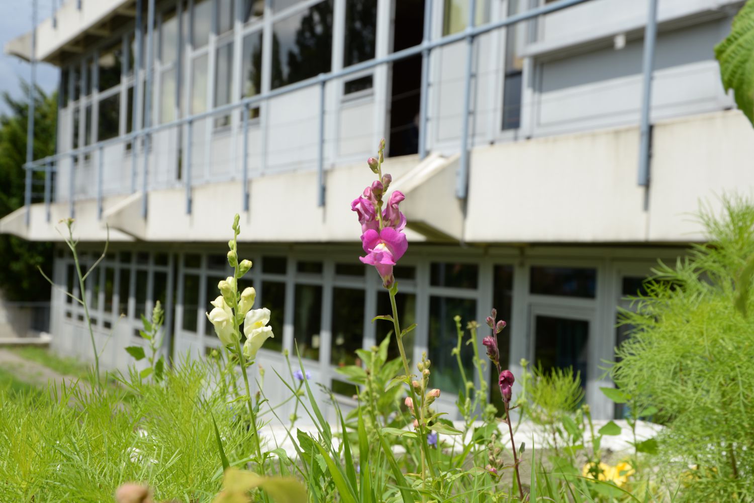 Ort: Der Campus Bergedorf ist von einer parkänlichen Anlage umgeben. Gerne kann der Rasen genutzt werden um sich auszuruhen, um zu lernen oder um einfach an der frischen Luft zu sein.