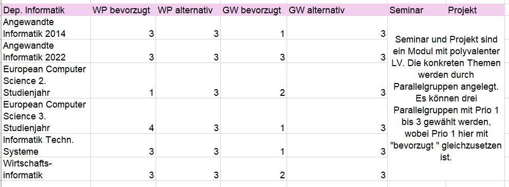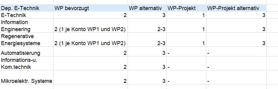 In der Regel finden die Wahlpflichtprojekte am Freitagvormittag und die Wahlpflichtmodule am Freitagnachmittag statt.