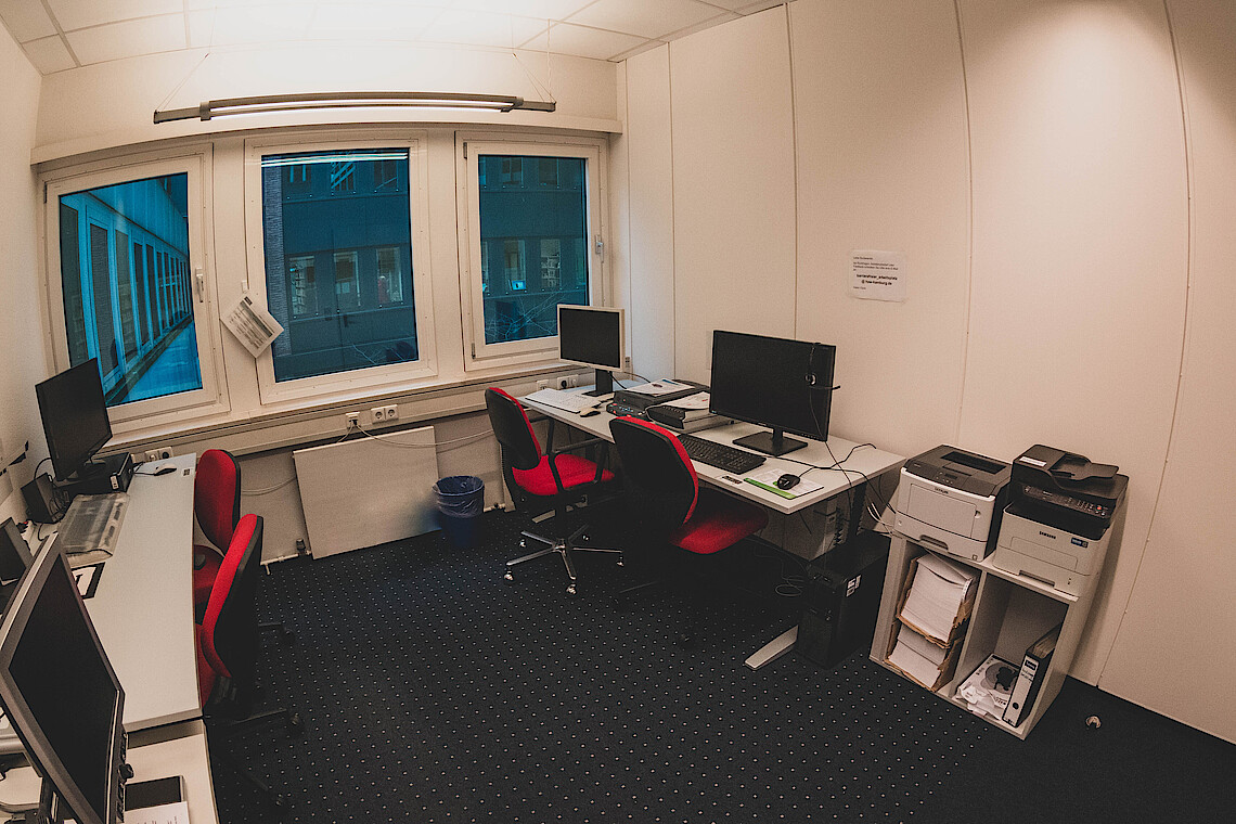 In der Fachbibliothek in der Alexanderstraße gibt es einen barrierefreien Arbeitsraum (Raum 1.11). Dieser ist aktuell mit zwei höhenvestellbaren Tischen, einem Spind und einem Bildschirmlesegerät (VisioDesk) ausgestattet. Eine mobile Tischerhöhung kann für die anderen Arbeitsplätze oder den Gruppenraum ausgeliehen werden. Bitte melde dich vor der ersten Nutzung bei Meike Butenob.