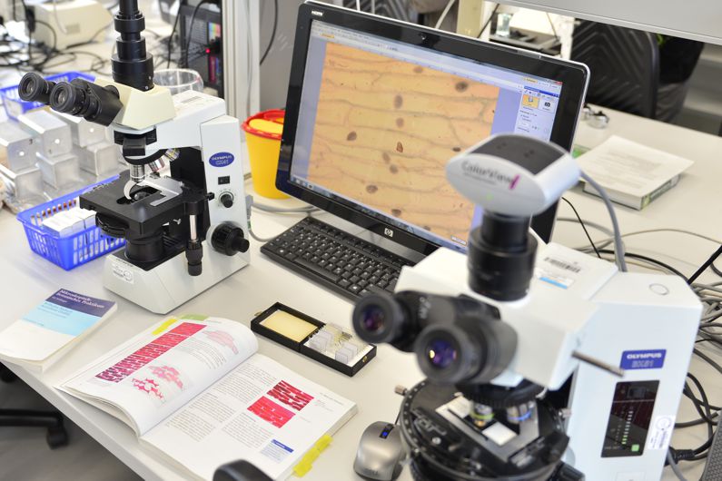 - Hellfeld- und Phasenkontrastmikroskopie mit Bilddokumentation und -bearbeitung an Durchlichtmikroskopen, Invertmikroskopen und binokularen Stereomikroskopen.