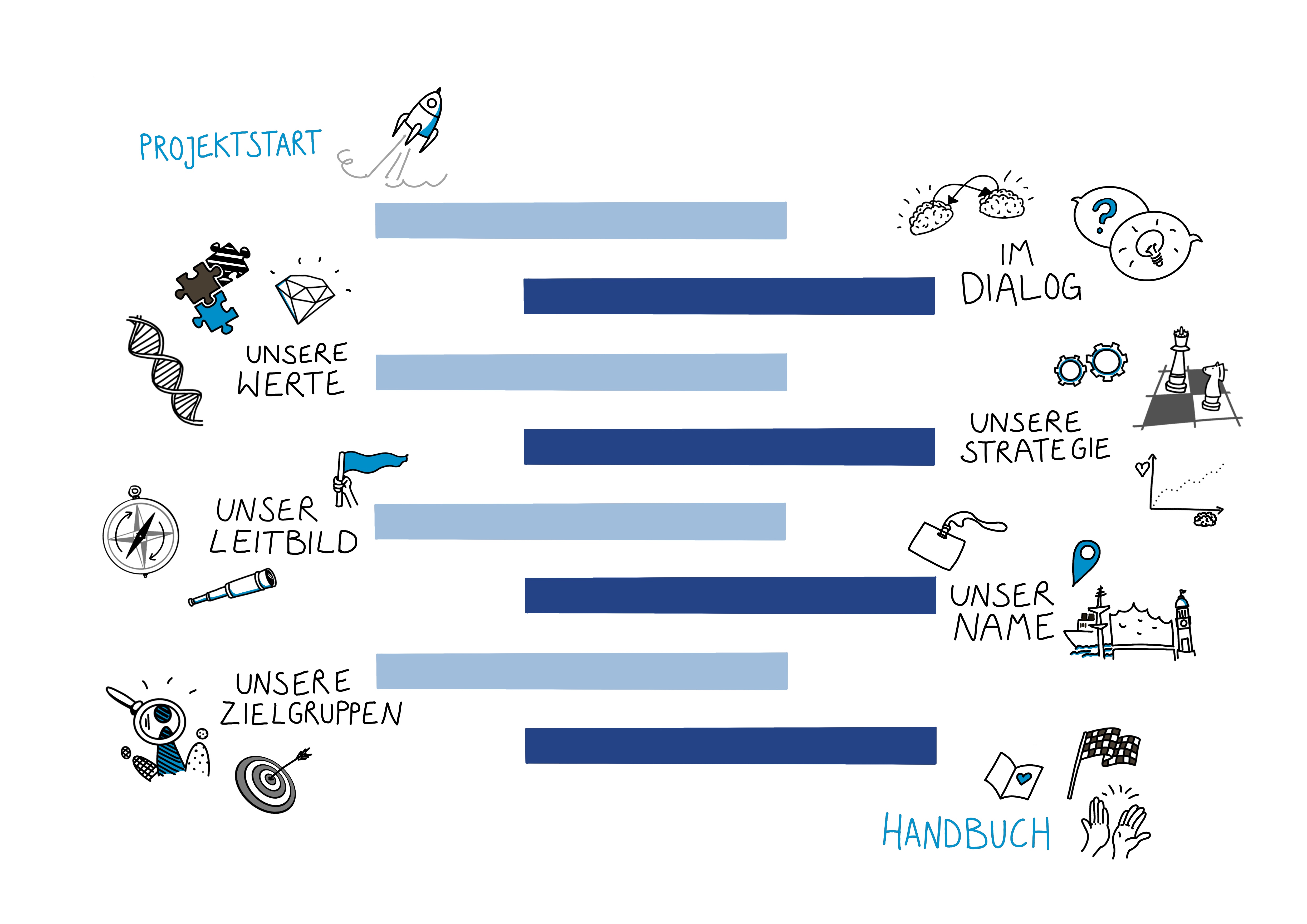 Die Markenreise ist ein identitätsstiftendes Strategieprojekt, das sich in drei Arbeitsebenen untergliedert: