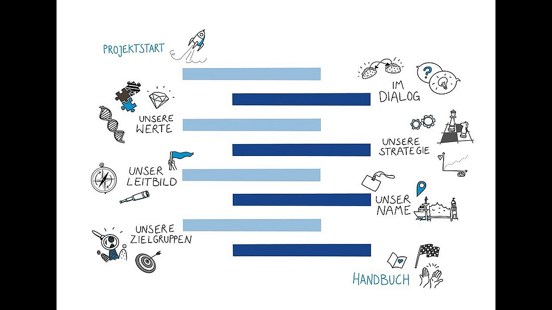 Die Kernidee des Vorhabens ist, an unserer eigenen Identität zu arbeiten und die Hochschulmitglieder in den Prozess zu involvieren. Darüber hinaus möchten für alle Hochschulbereiche eine mit der Markenkonzeption konsistente Kommunikation ermöglichen. Hierzu haben wir mit einer Strategieagentur in Beteiligungsformaten unterschiedliche Themenbereiche erarbeitet.