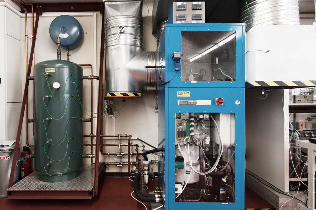 Sie ist mit einem 500-l-Wasserspeicher verbunden und mit zusätzlicher Messtechnik ausgestattet.