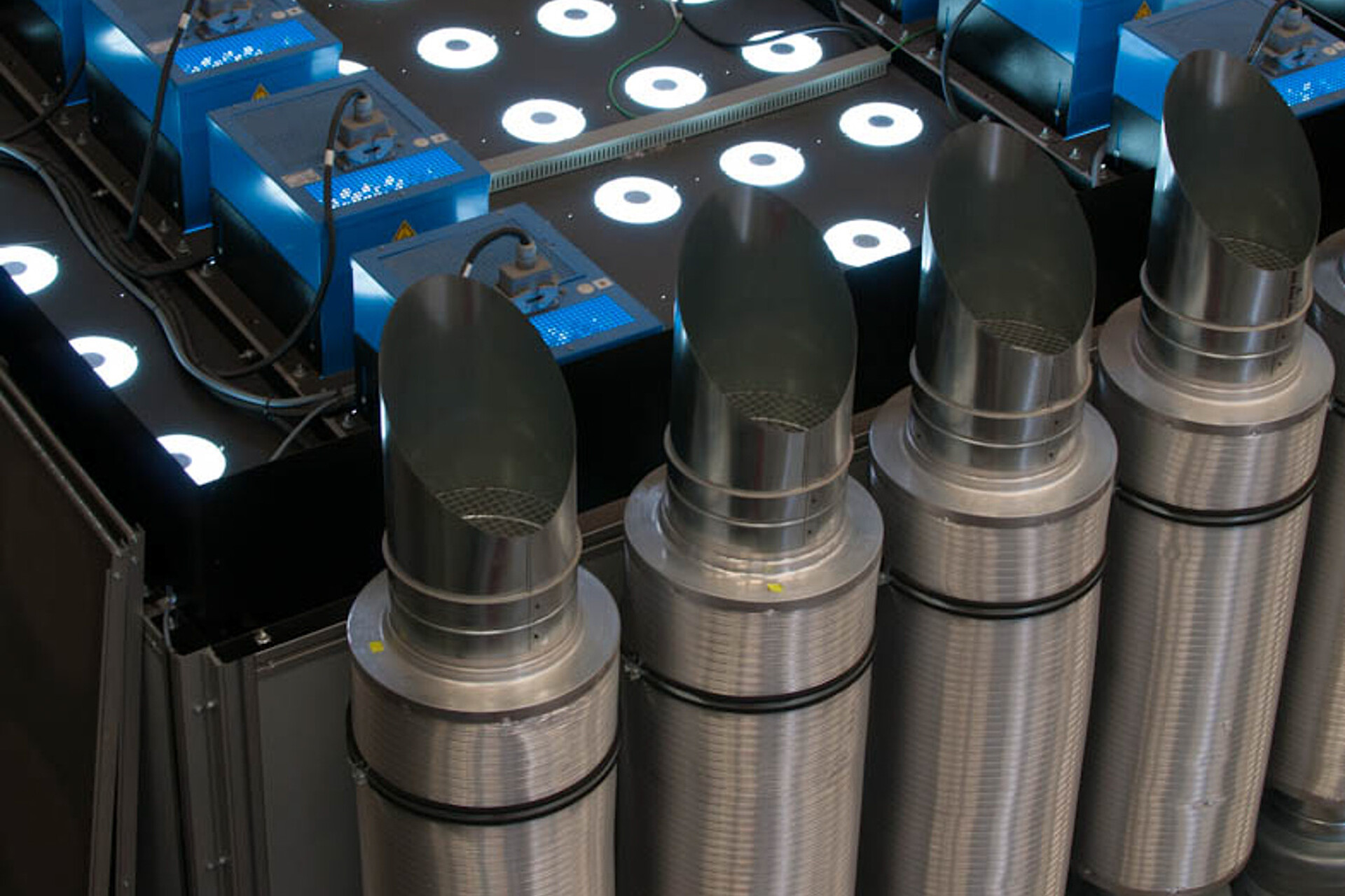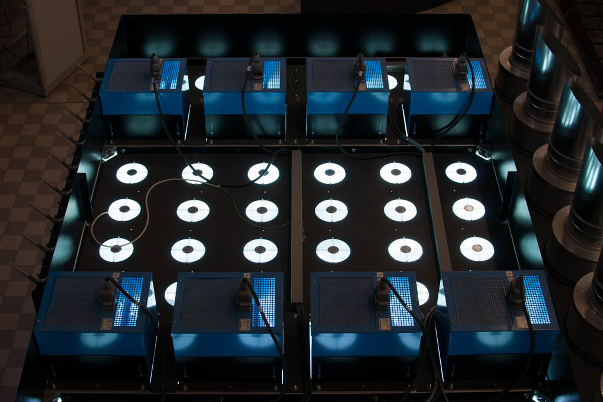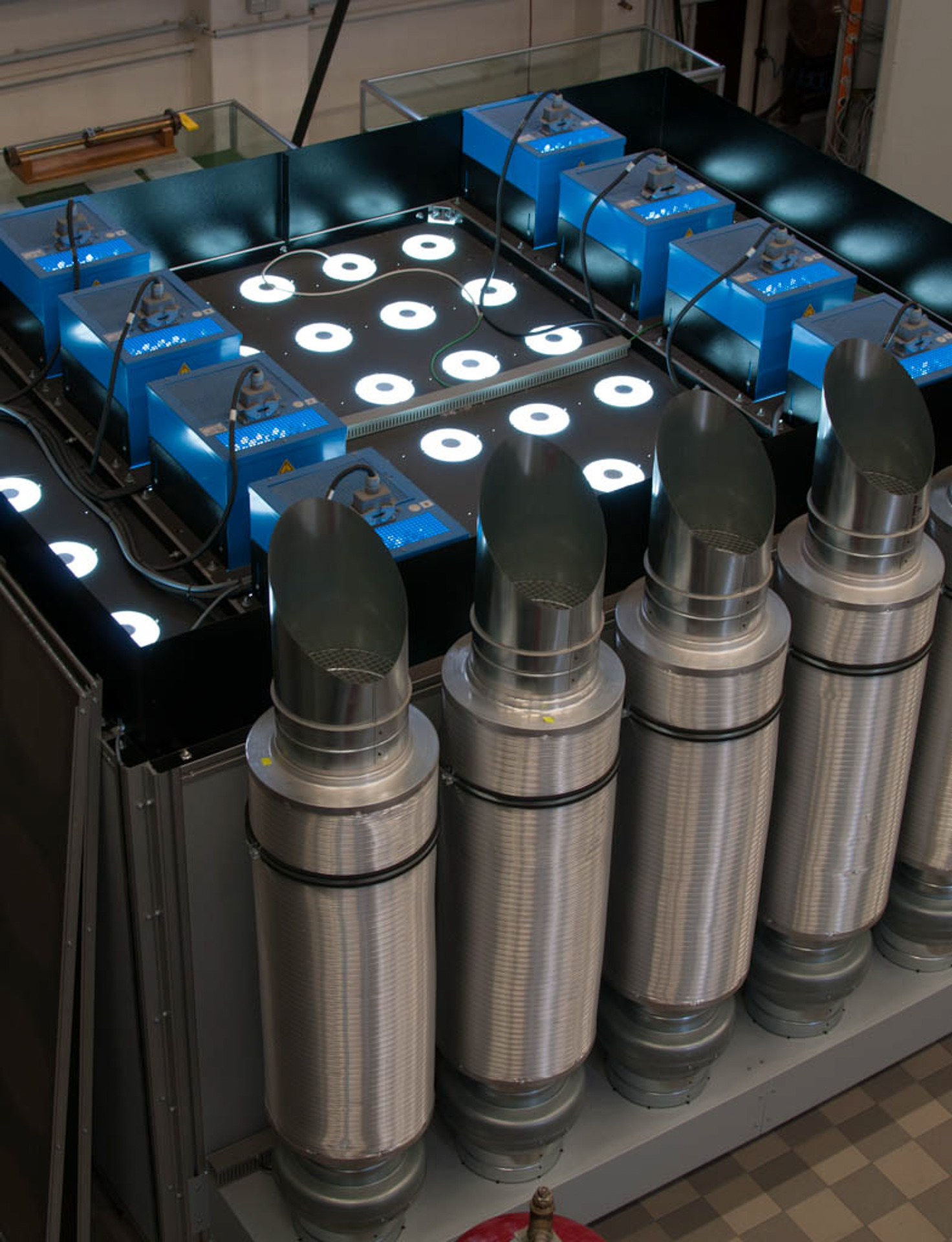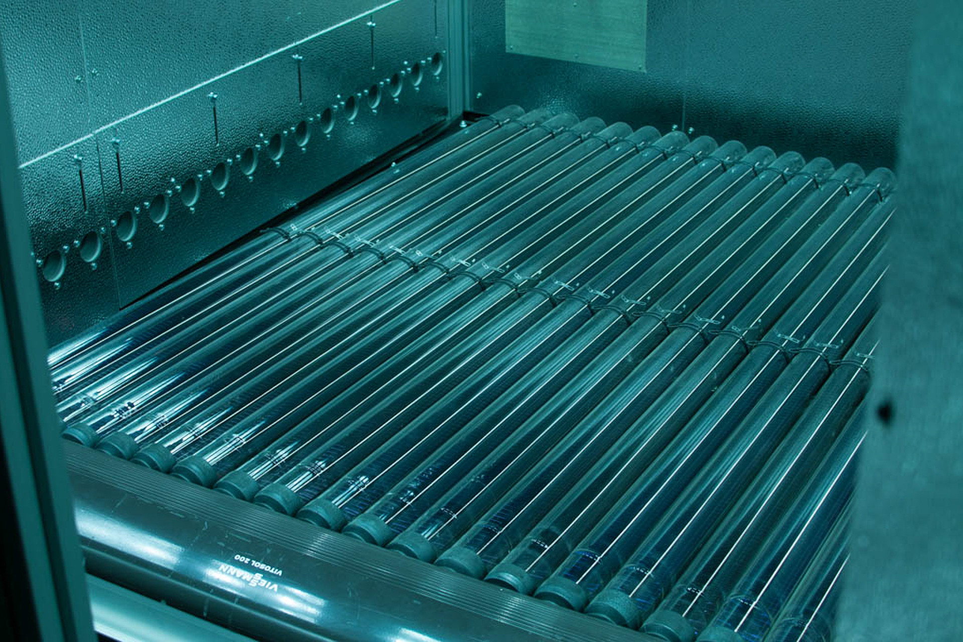 Leistung und Wirkungsgrad von Flachkollektoren oder Röhrenkollektoren sind abhängig von der einfallenden Solarstrahlung. Um die Wirkungsgrade der verschiedenen Kollektoren in Abhängigkeit der unterschiedlichen Solarleistung experimentell zu bestimmen, werden die Kollektoren in einem Sonnensimulator im Institut IEE unter vorgegebenen Bedingungen untersucht.