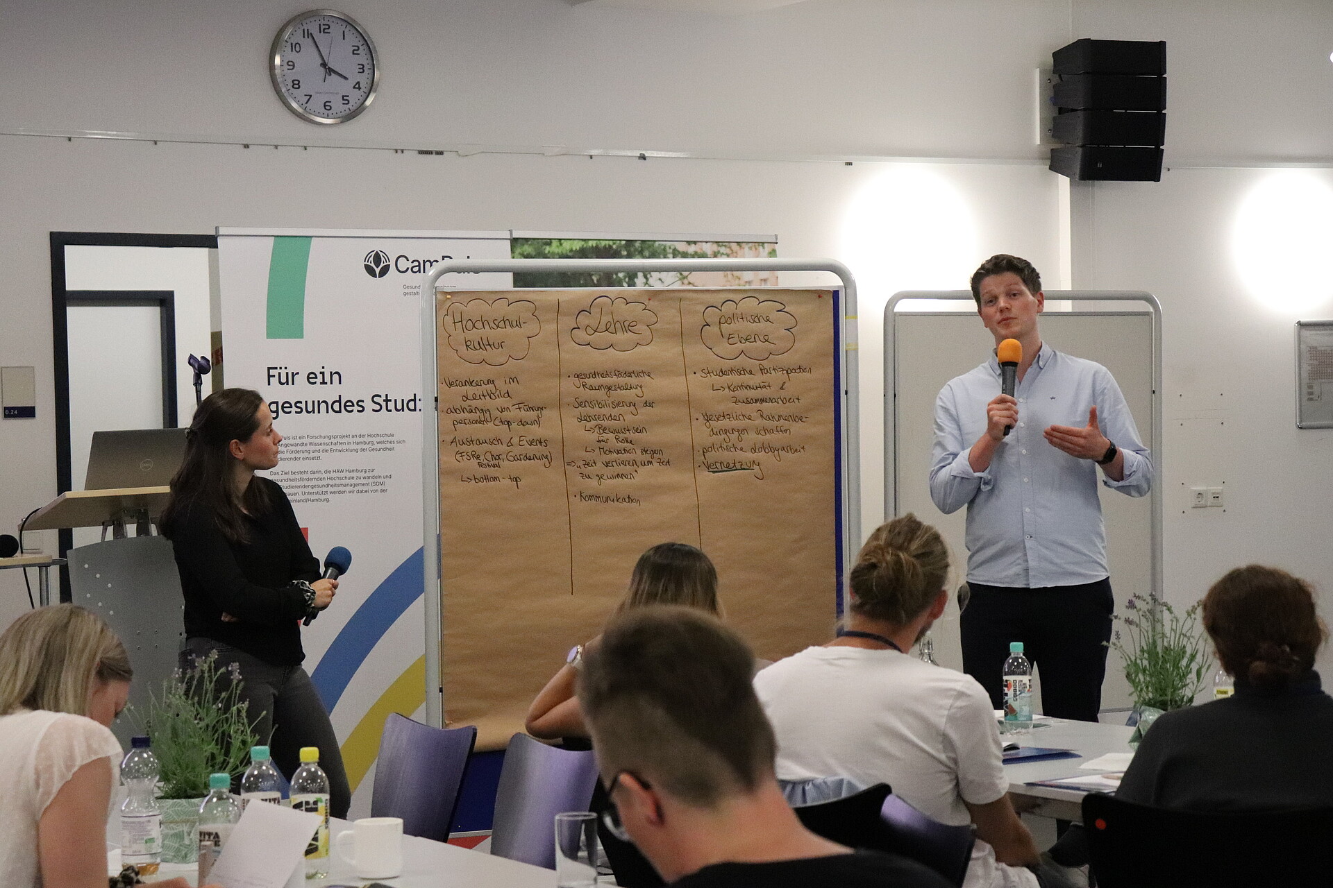 Am 18. Juli 2023 haben wir Raum für Austausch geschaffen und gemeinsam über die Gesundheitsberichterstattung als Treiber eines SGMs auf dem Weg zu einer gesundheitsförderlichen Hochschule diskutiert. Anhand der Ergebnisse der 1. Gesundheitsberichterstattung wurde beispielhaft die gesundheitliche Lage der Studierenden an der HAW Hamburg dargestellt. In drei sich anschließenden Workshops wurde vertiefend zu den Themen geschlechtersensible Forschung, mentale Gesundheit und Gesundheitskompetenz diskutiert.