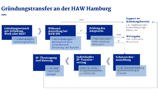 Die grafische Darstellung soll Ihnen einen Überblick über die wichtigsten Stationen bieten, die bei einer Idee, einem Werk oder einer Erfindung an der HAW Hamburg durchlaufen werden. In jedem Stadium bietet der GründungsService seinen Rat und seine Unterstützung an. Bitte beachten sie, dass bis zur endgültigen Klärung der Rechtslage die Erfindung in keiner Form veröffentlich werden sollte. Dies dient dazu, die Neuheit der Erfindung zu erhalten und eine problemlose Schutzrechtsanmeldung zu ermöglichen.