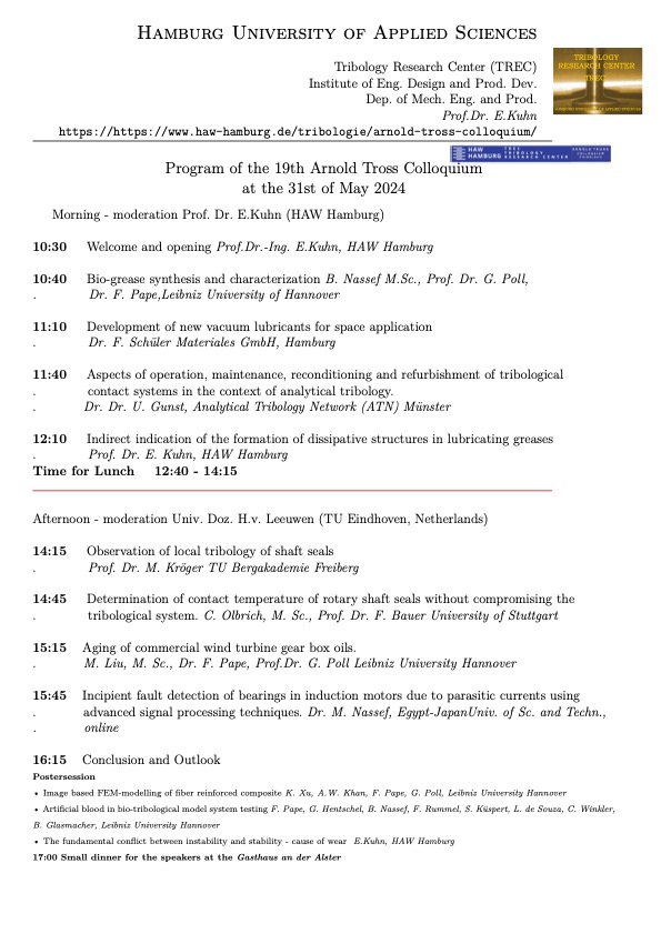 Interesting lectures, stimulating discussions and many conversations - that makes the Tribology Colloquium another successful event at the HAW in Hamburg