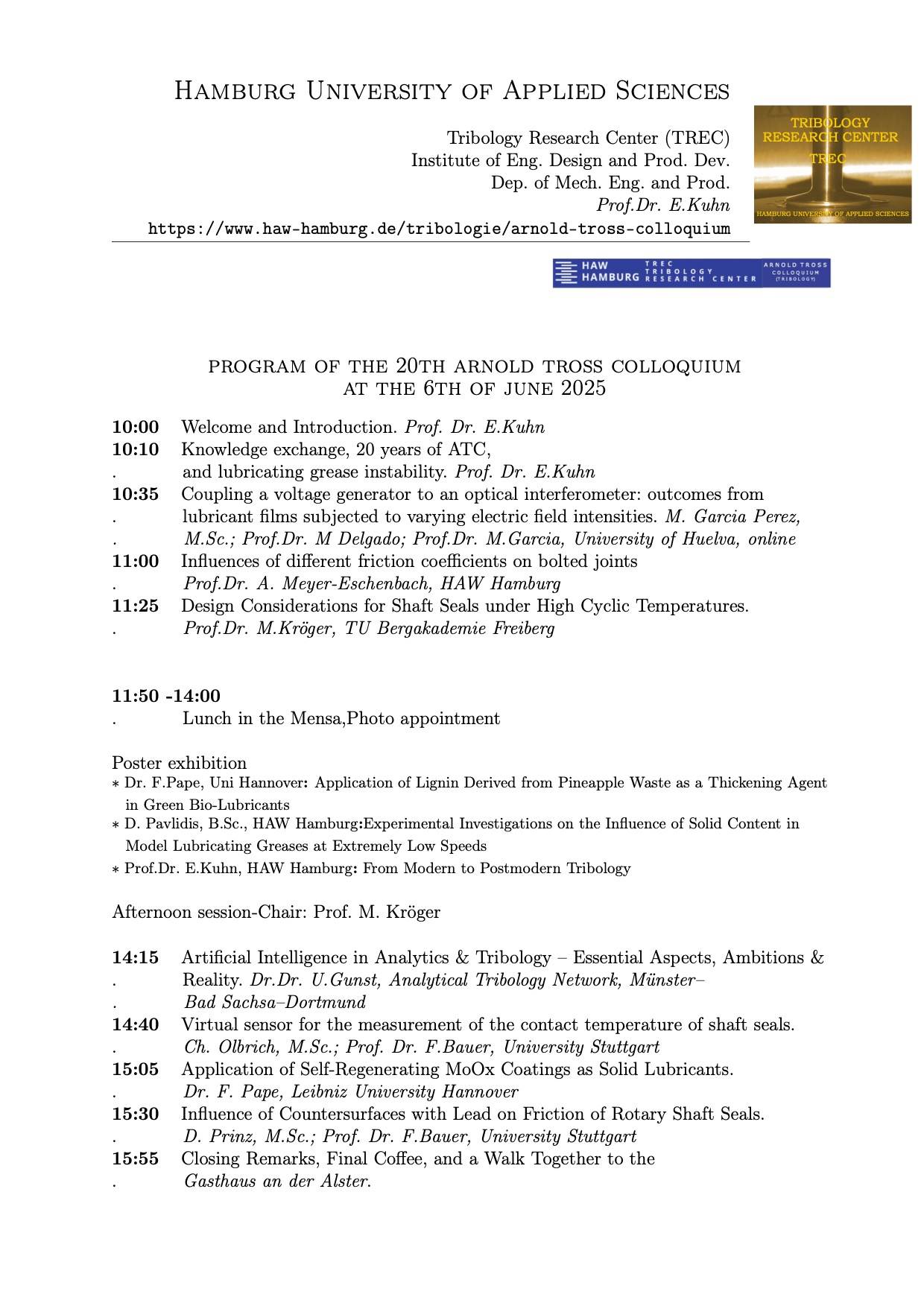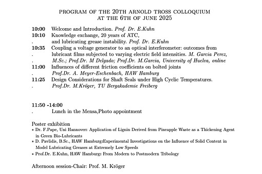 In 2025, we will be able to celebrate a small anniversary that 20th Arnold Tross Colloquium (Tribology)
